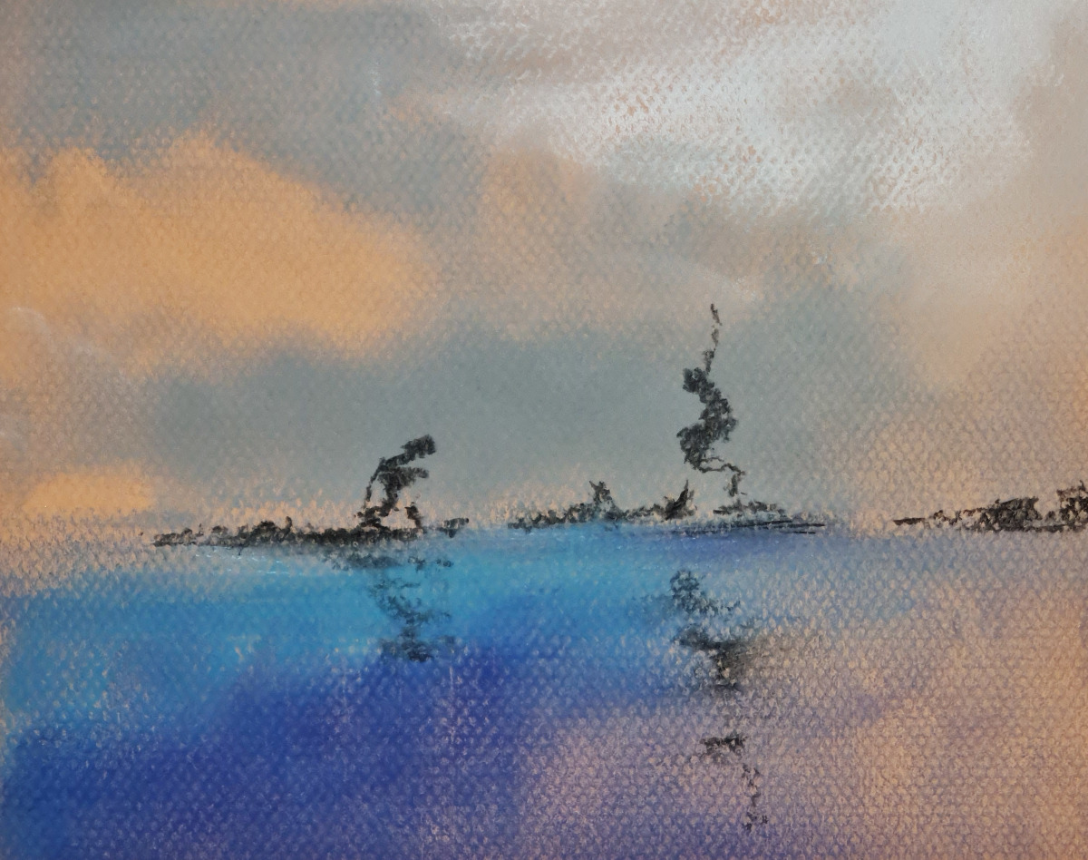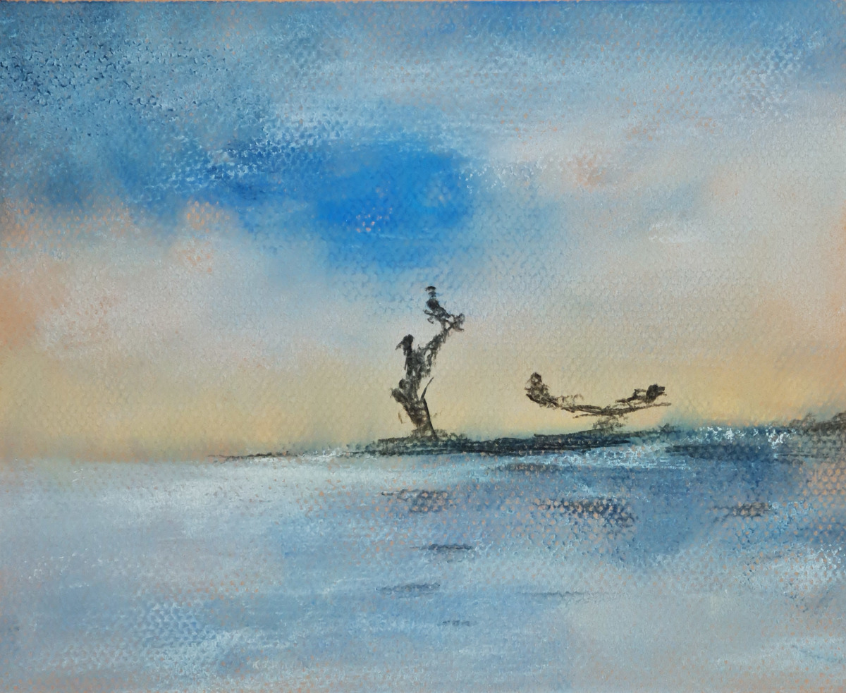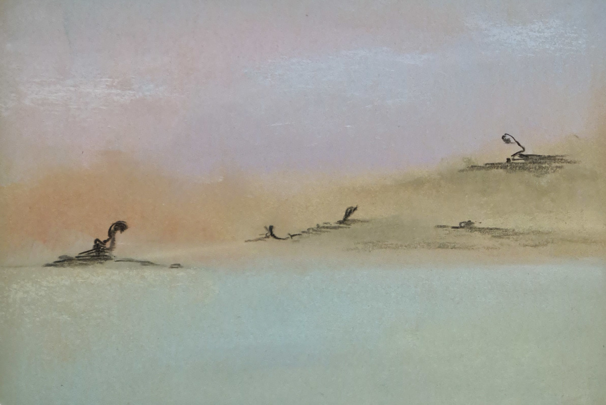 - Leitmotiv: Mensch in der KI-Ära. Fragmentarische Reflexion des Menschen in der KI-Ära, verbunden mit einer bewussten Rückkehr zum Handwerk durch verwendung von Holzkohle und Pastell.