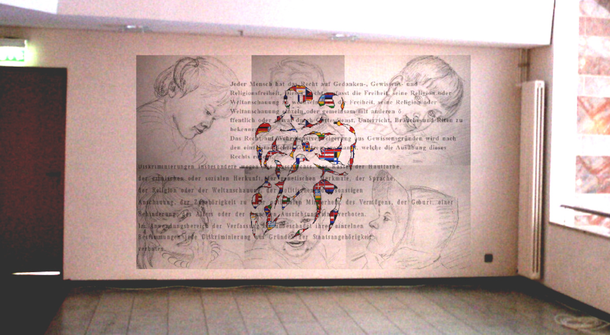 Entwurf für EU-Parlament, Assemblage, 230x230cm